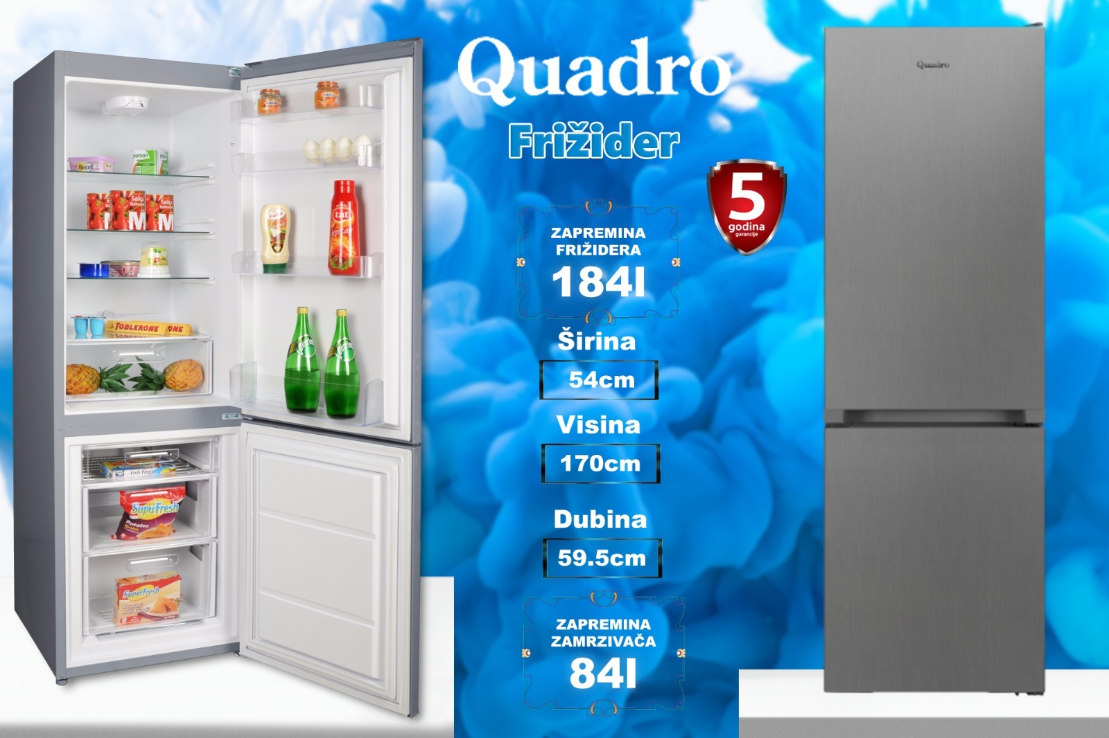AkcijaBijela tehnikaFrižider kombinovani Quadro, 5 godina garancija469.00KM Akcija traje još:POZOVI . Quantity Dodaj u košaricu Preporuči Frižider Povezani proizvodi AkcijaNamještajVeliki izbor ormara po mjeri u raznim bojama AkcijaNamještajFrancuski ležaj 120×200 529.00KM AkcijaNamještajFrancuski ležaj 160×200 599.00KM