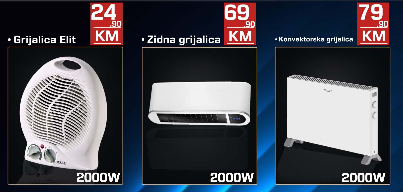 AkcijaRaznoGrijalice Akcija traje još:POZOVI . Preporuči Grijalica Povezani proizvodi AkcijaFRIŽIDERIFrižider kombinovani Quadro 5 godina garancija 329.90KM AkcijaNamještajGarnitura trosjed, dvosjed i fotelja 1,399.00KM AkcijaRaznoGrijalice zidne