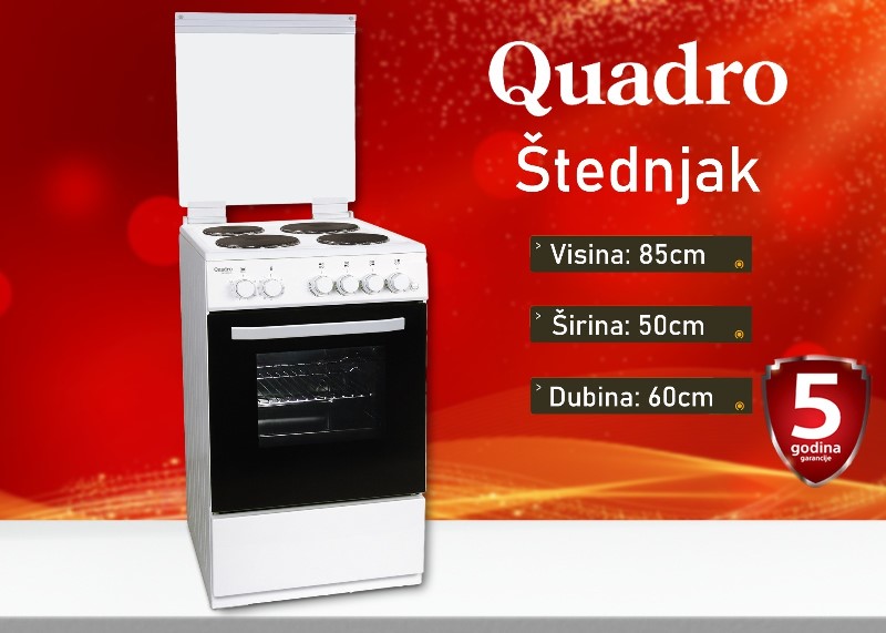 AkcijaBijela tehnikaŠtednjak električni Quadro, širina 50cm, 5 godina garancija319.90KM Akcija traje još:POZOVI . Quantity Dodaj u košaricu Preporuči Štednjak Povezani proizvodi AkcijaBijela tehnikaVeš mašina Eurostar 6kg 1000 obrtaja, 5 godina garancija 339.00KM AkcijaBijela tehnikaUgradbeni set pećnica+ploča Tesla, 5 godina garancija 549.90KM AkcijaBijela tehnikaVeš mašina Quadro 7kg 1000 obrtaja, 5 godina garancija 419.00KM