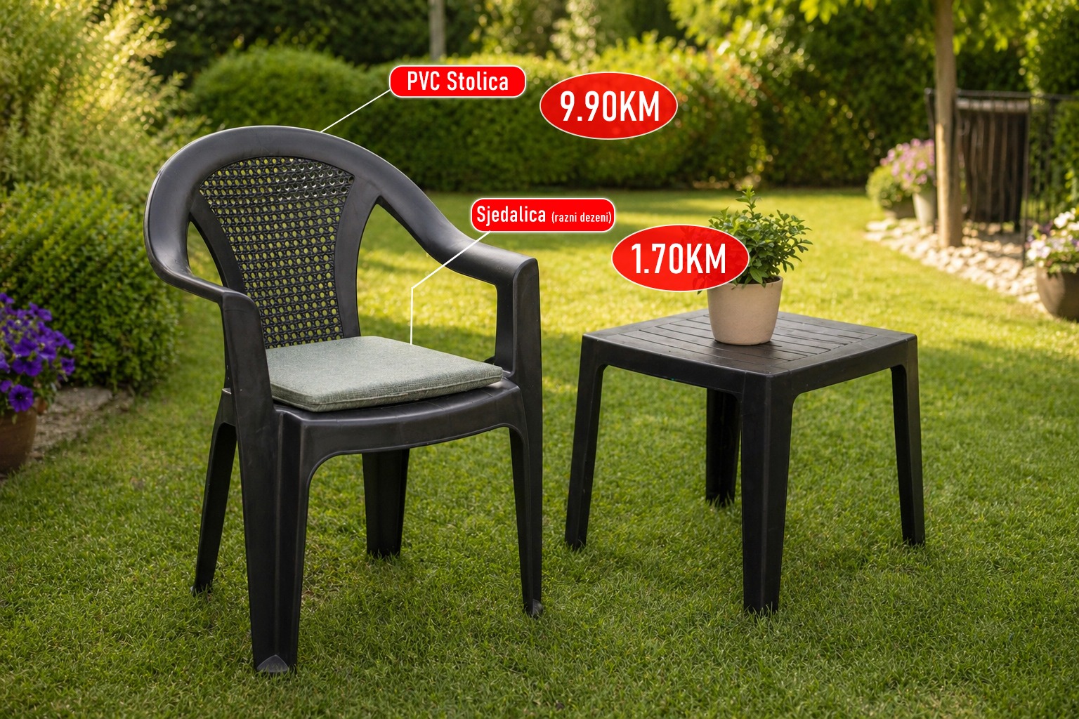AkcijaBašta i dvorišteStolica vrtna PVC, sjedalica u raznim dezenima Akcija traje još:POZOVI . Preporuči Stolica Povezani proizvodi AkcijaKuhinjeVeliki izbor kuhinja po mjeri u raznim bojama AkcijaNamještajGarnitura trosjed, dvosjed i fotelja 839.00KM AkcijaRaznoCrijevo za vodu 20m 14.90KM