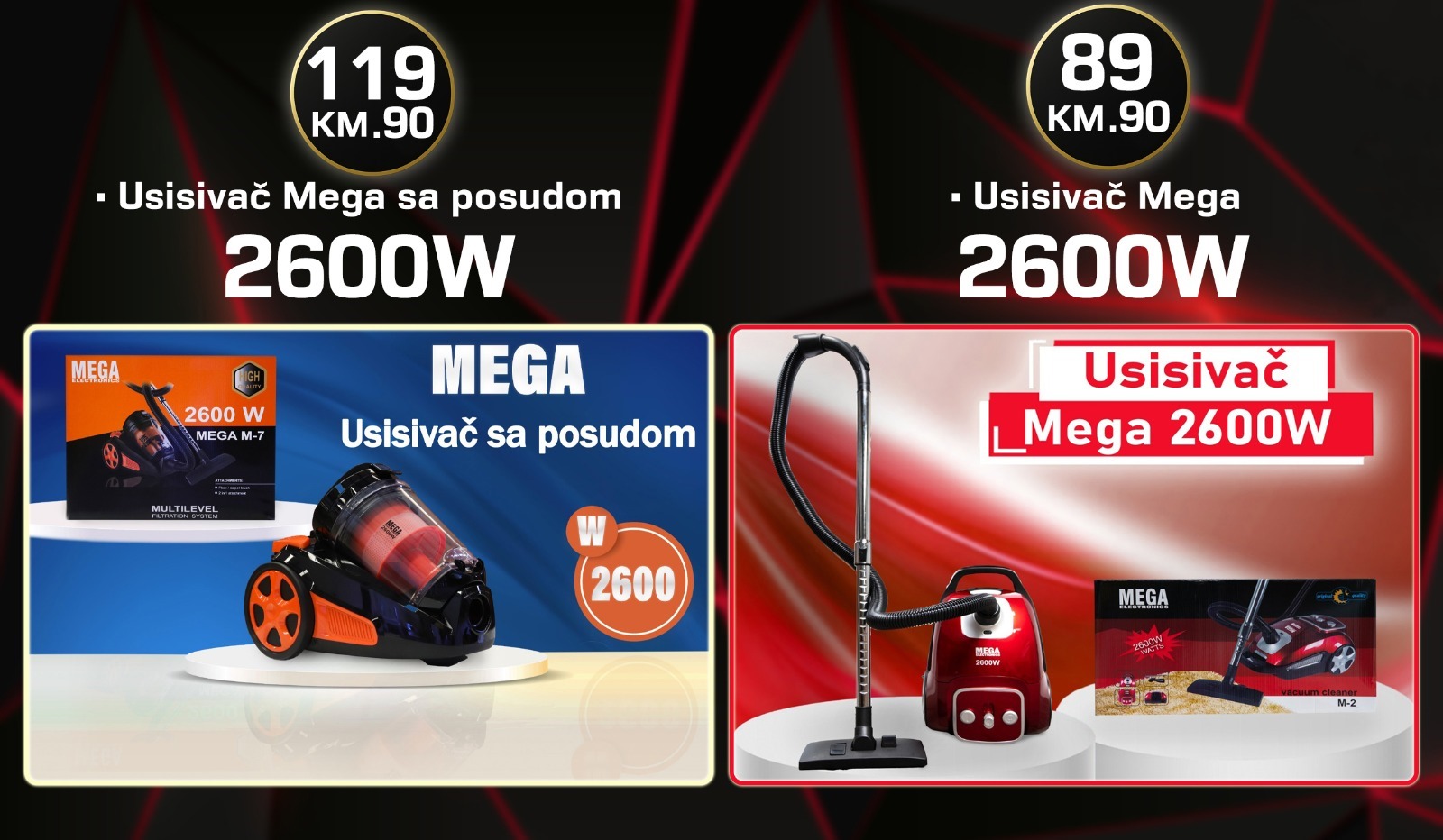 AkcijaRaznoUsisivač Mega sa posudom 2600w, Usisivač mega s platnenom vrećicom 2600w Akcija traje još:POZOVI . Preporuči Usisivač Povezani proizvodi AkcijaNamještajFrancuski ležaj 160×200 485.00KM AkcijaRaznoKamin na čvrsto gorivo 399.00KM AkcijaNamještajFrancuski ležaj 160×200 599.00KM