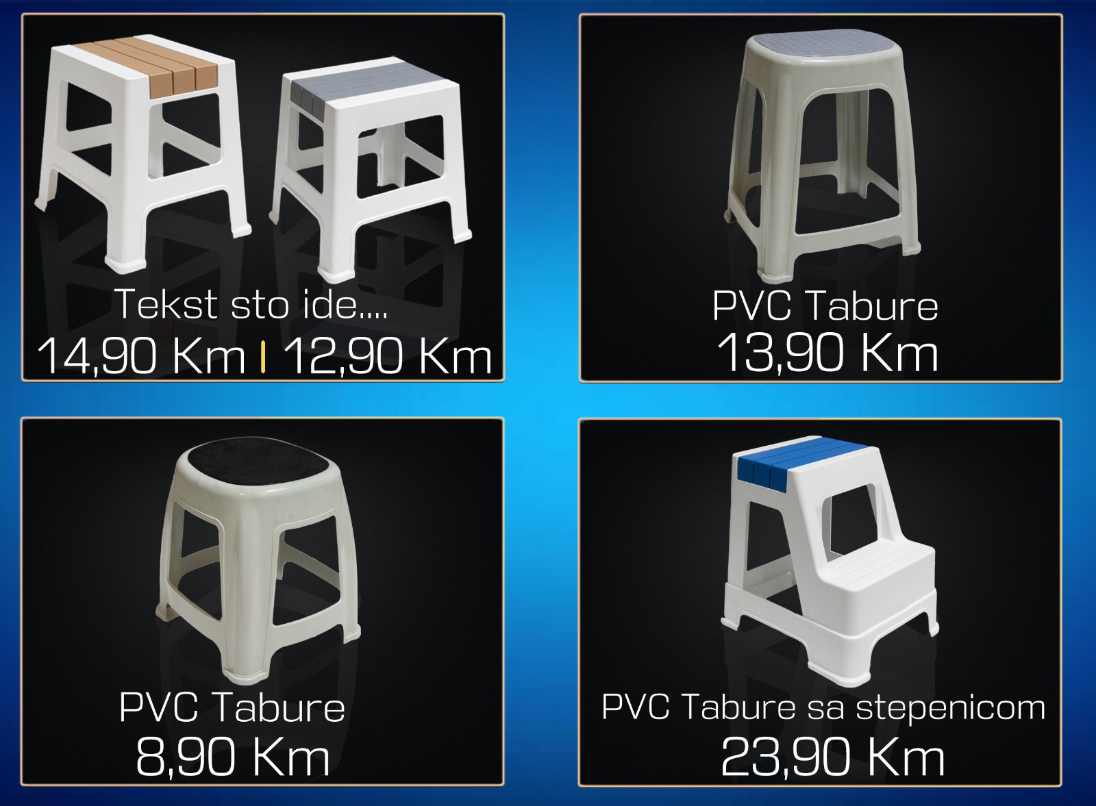 AkcijaRaznoVeliki izbor pvc taburea Akcija traje još:POZOVI . Preporuči Tabure Povezani proizvodi AkcijaRaznoVeliki izbor kamina AkcijaRaznoVeliki izbor usisivača AkcijaRaznoVeliki izbor kamina Plamen