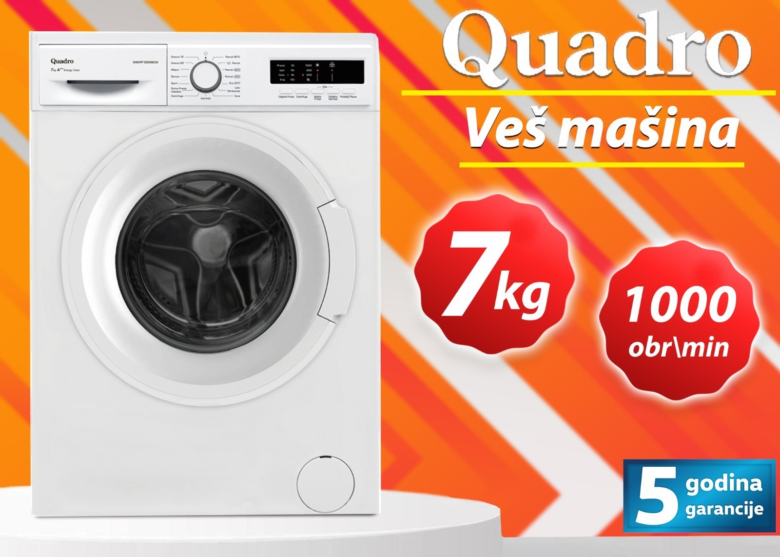 AkcijaBijela tehnikaVeš mašina 7kg 1000 obrtaja, 5 godina garancija389.00KM Akcija traje još:POZOVI . Quantity Dodaj u košaricu Preporuči Veš mašina Povezani proizvodi AkcijaBijela tehnikaFRIŽIDERIFrižider kombinovani Eurostar, 5 godina garancija 419.90KM AkcijaBijela tehnikaŠtednjak električni Eurostar, širina 60cm, 5 godina garancija 349.90KM AkcijaNamještajFrancuski ležaj 160×200 599.00KM