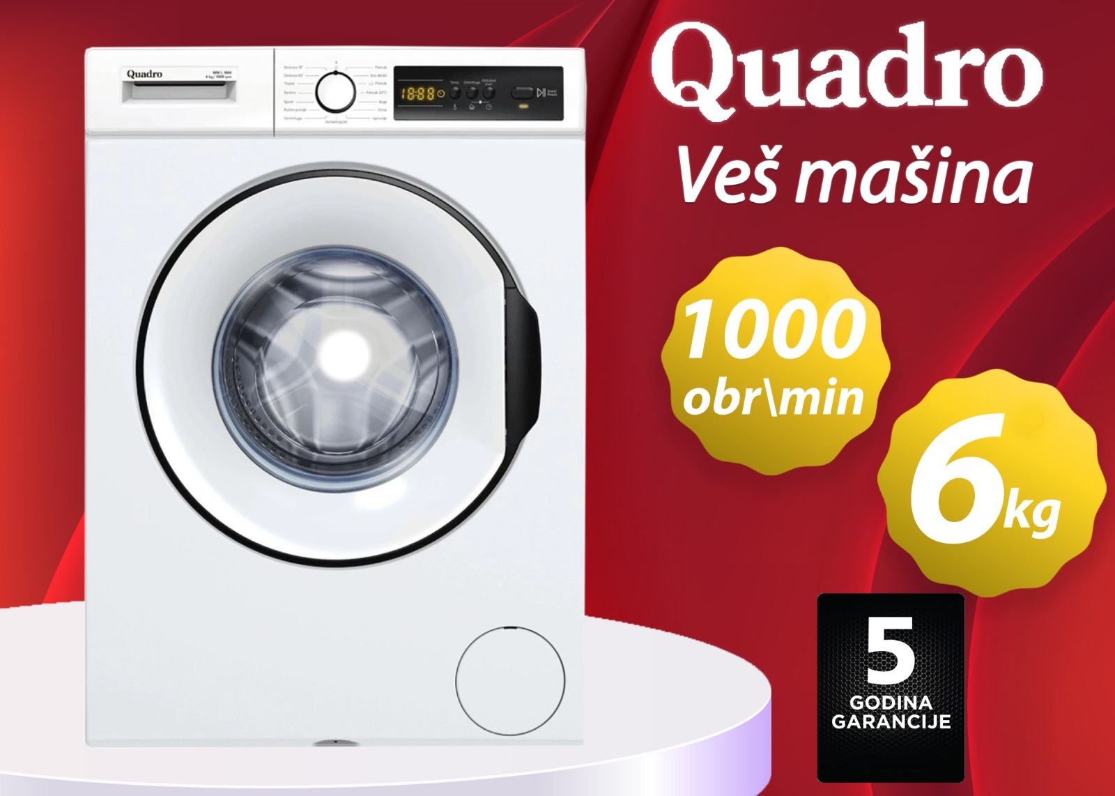 AkcijaBijela tehnikaVeš mašina Quadro 6kg 1000 obrtaja, 5 godina garancija389.00KM Akcija traje još:POZOVI . Quantity Dodaj u košaricu Preporuči Veš mašina Povezani proizvodi AkcijaRaznoJastuk 50×70 u raznim bojama 4.90KM AkcijaNamještajFrancuski ležaj 160×200 699.00KM AkcijaRaznoKamin Plamen gusani na čvrsto gorivo 649.00KM